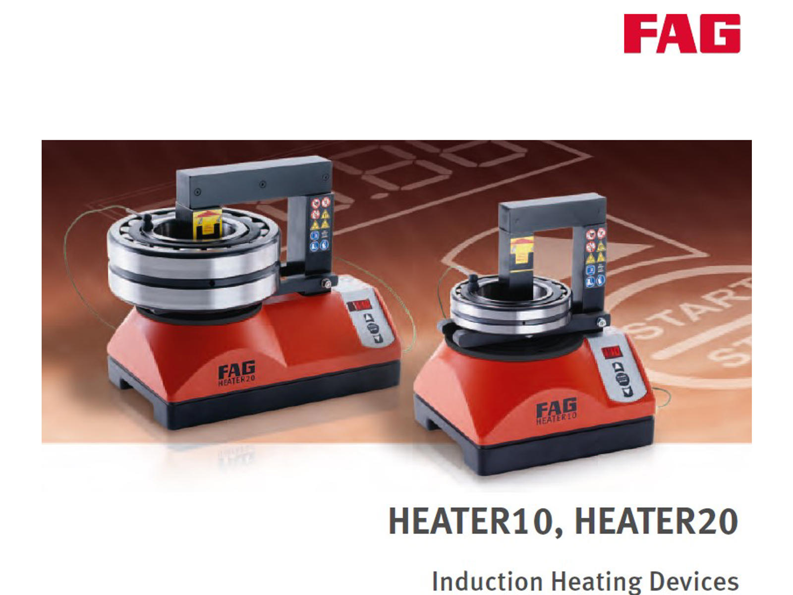 The induction heating devices HEATER 10 and HEATER 20 are compact and give rapid, clean operation. Their high efficiency level allows energy-efficient heating and shorter heating times. This reduces the operating costs. The uniform, controlled heating allows consistently good quality of mounting. Operation is simple and user-friendly, in addition to which the fitter does not need to remove his gloves. The touch keyboard is oilresistant, dustproof and waterproof. When heating by induction is used, there is no need at all to use oil – this gives particularly good environmental compatibility. The scope of application is very extensive. They can be used to heat the loose inner rings of cylindrical or needle roller bearings as well as sealed and greased bearings. Compared with previous models, they show further improvements in performance capacity and safety.
